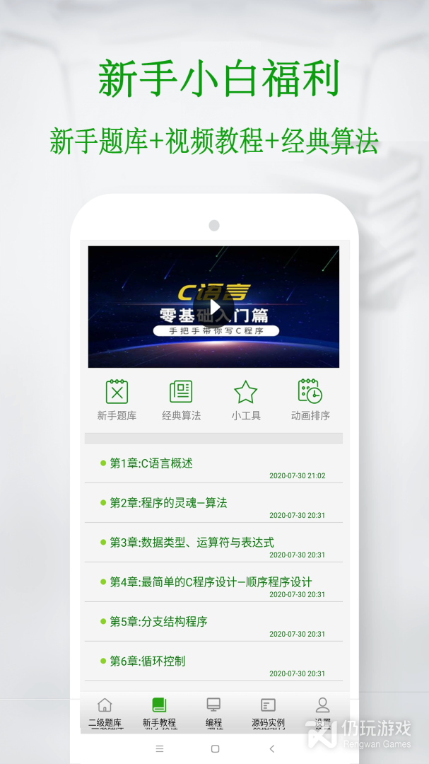 本地编译,无需网络,提供多种编译器内核和编译控制台,让没有计算机的同学们也能随时随地验证C语言小程序,是菜鸟学C语言的入门必备。