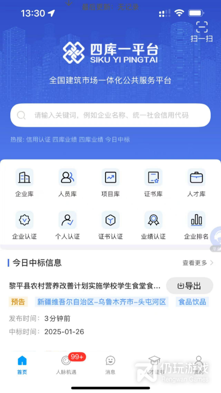 1、四库一平台查询系统官方app,专为全国建筑行业打造的服务平台,提供资源共享、资本共享、信息查询等功能,助力中小建筑企业发展,为建筑行业带来更多便利