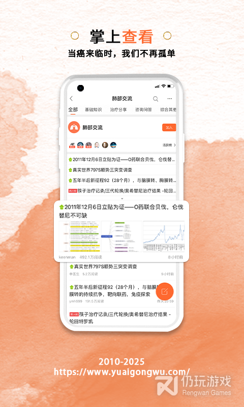 八个癌种的讨论分区,创造无障碍交流空间,随时与肿瘤患友、家属及医药专家探讨治疗康复经验,分享豁达乐观心态。