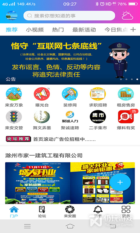 2、互动社交软件;在这里用户可以随时随地了解本地圈子,便民服务,最新资讯,吃喝玩乐等;一站式为大家提供一个便捷,高效的掌上服务平台哦!来安人都在用的手机app,你还在等什么