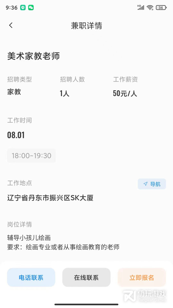 2、这里所有的岗位都是非常的详细,用户都能随时都能找到适合自己的,让您来这里赚零花钱也是非常的轻松,还能确保找工作的安全