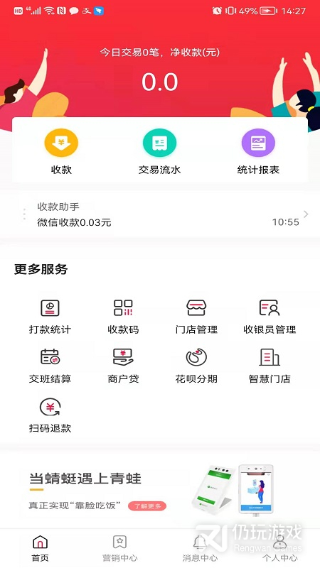 5、便捷收款:支持商户主扫、被扫收款功能,实时展示交易流水