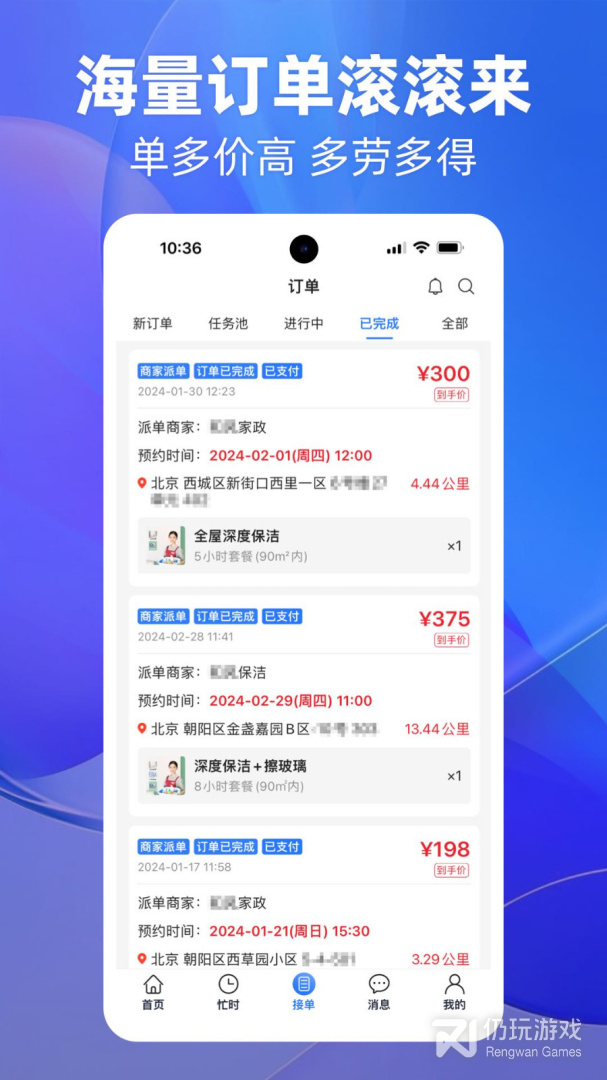 1.轻松获取来自各个平台和渠道的商家订单,接单抢单,业务不停;