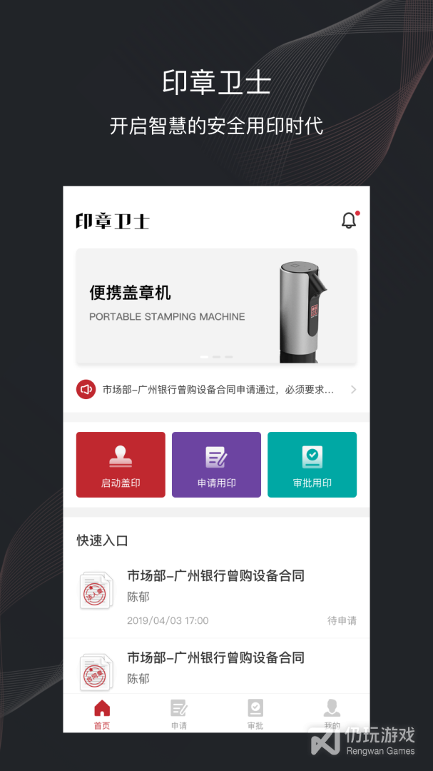 3、拥有审批用印版块,用户在这里能够看到各种用印申请,一键审批;