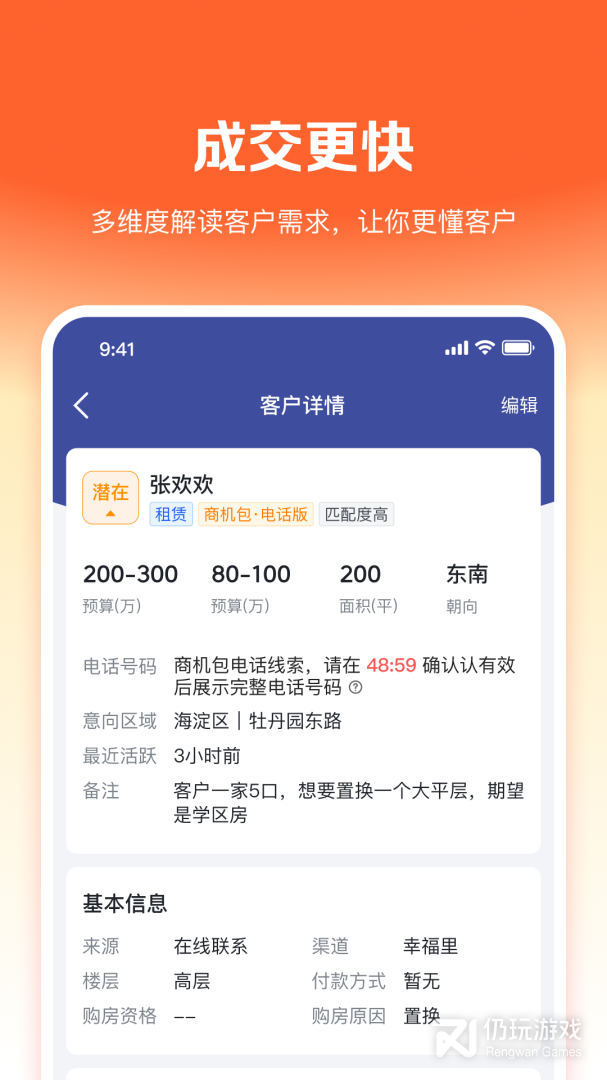 幸福客主要用于项目专员验证客户、报备、分派售楼员及售楼员跟进客户的专属应用。