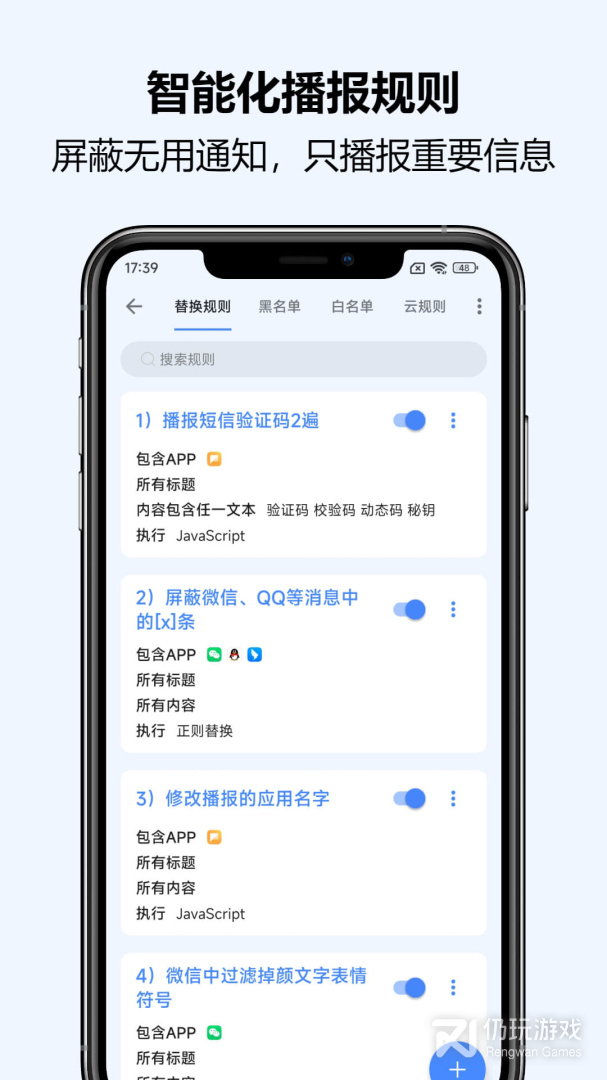 2、只要手机软件有新的消息通知,这款软件就可以播报出来,让用户只知道通知内容,支持自定义软件播报,帮主用户随时掌握通知信息