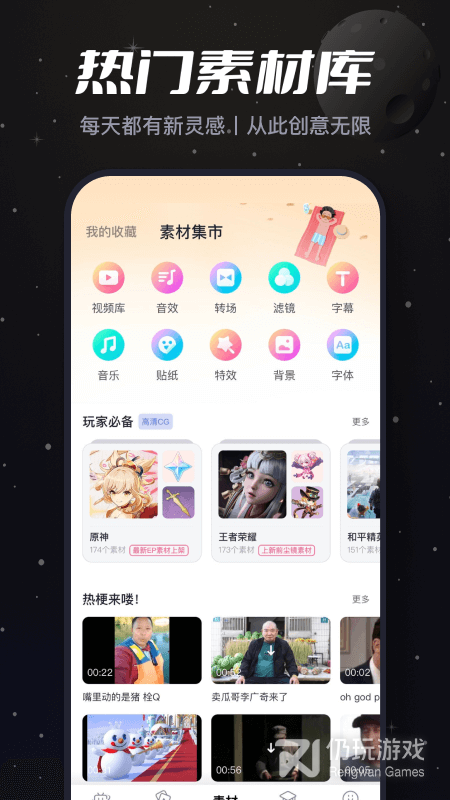 4、必剪是功能全、素材多的免费手机视频剪辑神器,提供丰富素材、特效、音乐资源,高清录屏,全能剪辑,随时随地处理手机内的视频,打造优质作品。