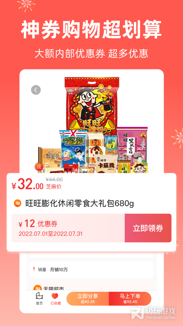 1、专注购物、优惠券发放、生活优惠!与百万淘宝天猫京东拼多多等一线商家合作
