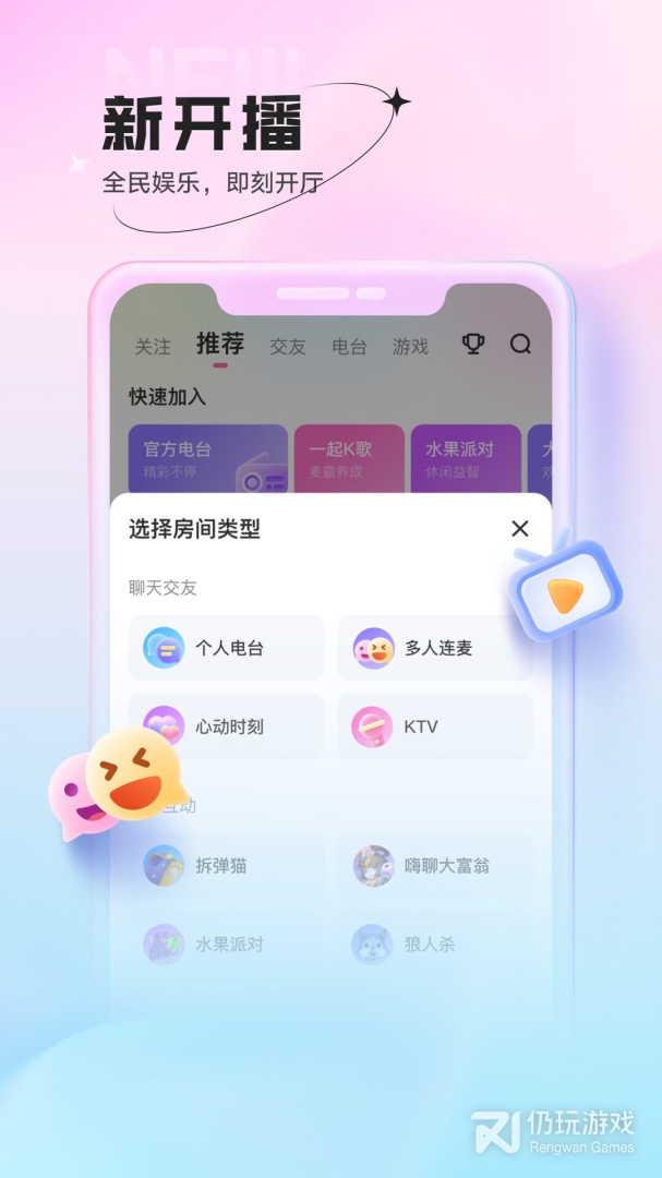 抢麦唱歌、猜歌红包、团战PK…各种精彩等你来玩!炫酷直播、海量曲库应有尽有。