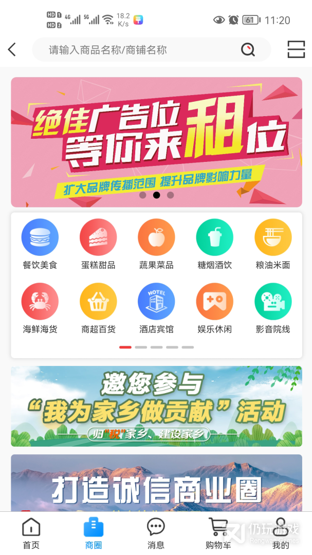 3、为你开启智慧同城生活,汇集了餐饮美食、蛋糕甜品、蔬果菜品、糖烟酒饮、粮油米面、海鲜海货、商超百货、酒店宾馆、娱乐休闲、影音院线等专区,可以实时了解相关商圈资讯,并且可以查看消息通知,即可使用哦