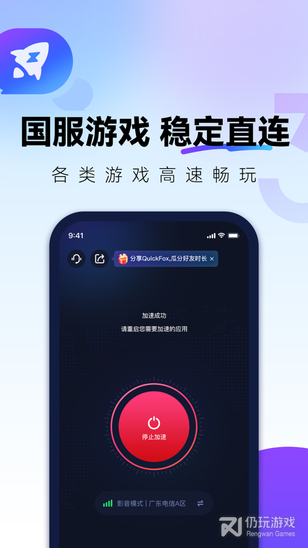 QuickFox回国加速器,海外华人、留学生、海外出差用户群体回国加速领先品牌,解决地域限制,免费高速访问中国网站,海外一键加速回国,解锁国内音视频资源,高速专线稳定低延迟玩国内游戏。