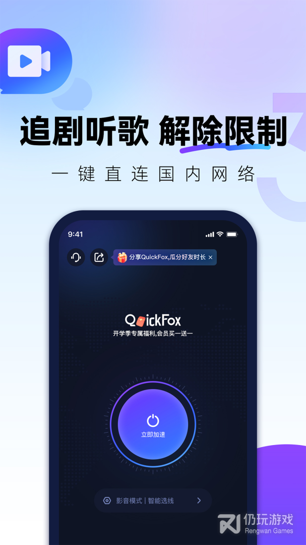 QuickFox解锁国内音视频网站,国外看国内影视平台、听歌、出国留学海外党必备加速器。香港台湾可用,海外华人看电影电视追番。