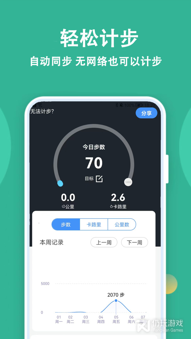 5、通过软件记录你每天的步行步数,里程数、徒步次数等详细数据,每日热量消耗一目了然