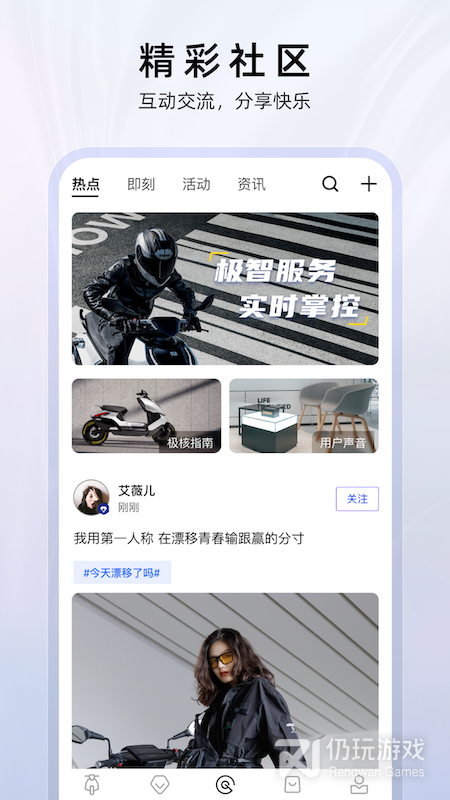 3、该软件与品牌旗下高端电摩进行相匹配,用户能够通过软件实时获取到车辆的信息,并且还可以在软件上认识到同地区的摩友,大家可以一起分享交流自己的精彩生活,让用户的生活更加具有乐趣