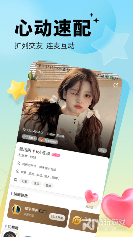 2、业界实时语音技术,根据你的风格匹配高颜值游戏大神,更有游戏开黑房间,随时随地体验娱乐互动
