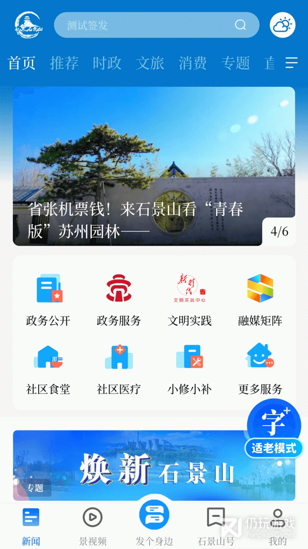 北京石景山 引用石景山区信息资讯、政务服务、民生服务、文旅、专栏、服务等公共服务资源打造的一款本地综合服务类APP。