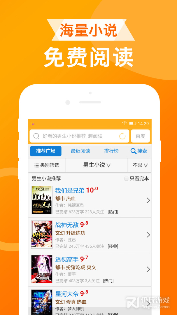1、全屏阅读:轻轻上推进入全屏,下拉呼出搜索框进行搜索,最方便的全屏阅读体验