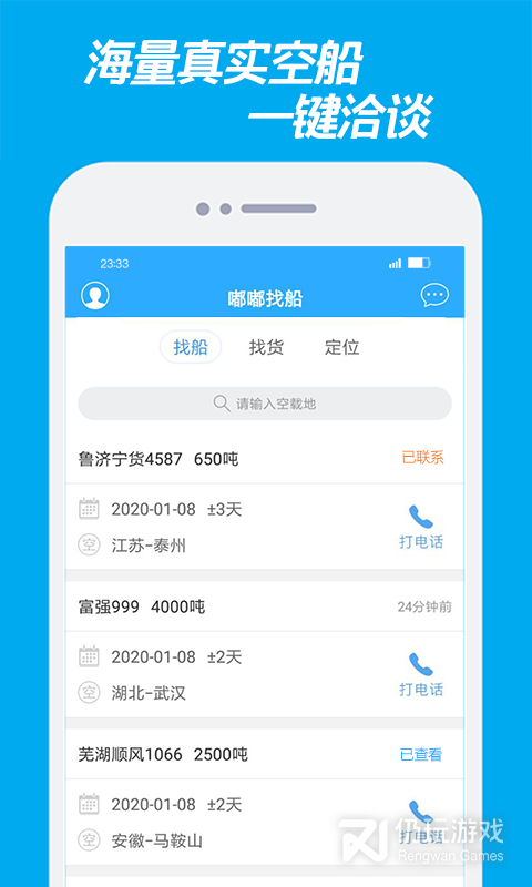 【船货预约】每天更新海量空船、货源,覆盖长江全线、运河及其它内河,一键拨打电话。