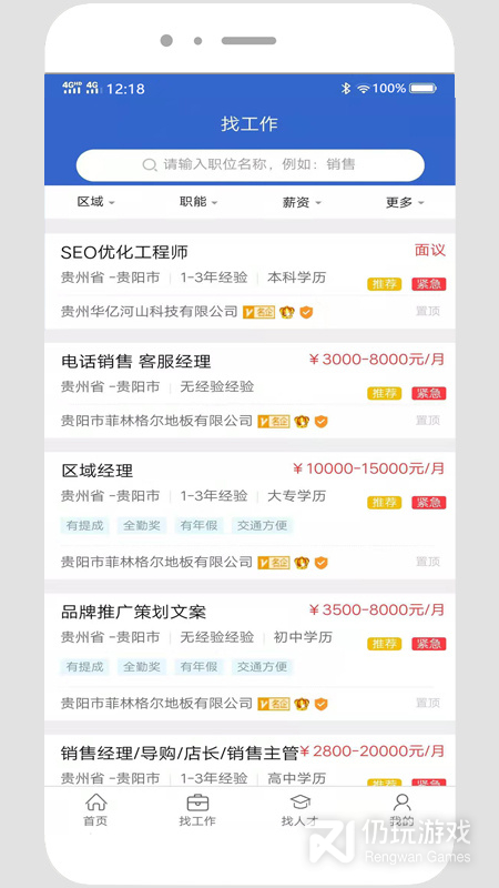 【贵阳人才网】求职招聘找工作就用贵阳人才网APP,全职、兼职、猎头、培训、多种工作机会任你挑,工作真实安全可靠,知名企业招聘信息更新传播更迅速,高薪工作随您挑!