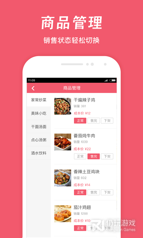 4、可以随时将店铺的商品修改价格的信息,正常出售或是下架