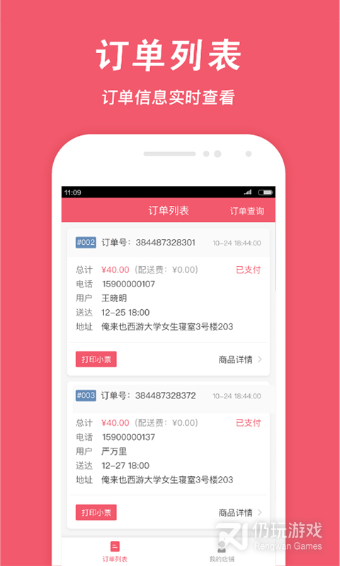【订单管理】自动接单并打印小票,处理催单。