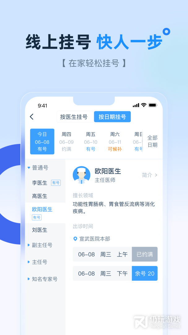 1、掌上宣武医院,专为医生打造的移动就诊助手。软件拥有咨询回复、报告单查询、复诊预约以及在线就诊功能,支持预约历史记录查看,帮助医生便捷移动办公