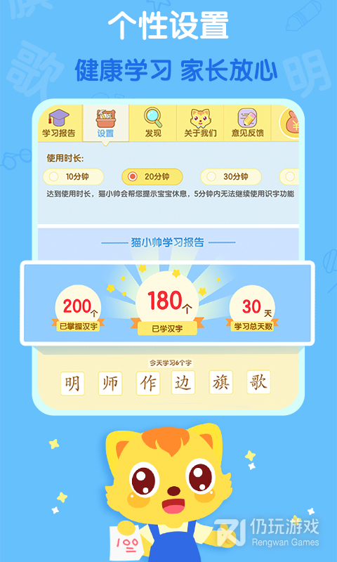 《猫小帅识字》——专为4~8岁儿童设计的幼儿识字软件。