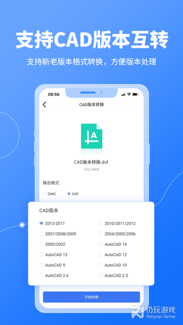 3、CAD转换器是非常好用的文件转换软件,支持多种文件格式之间的互相转换,能够帮助用户随时随地转换成自己需要的文件格式,手机操作简单方便,能够大大提高用户的办公效率