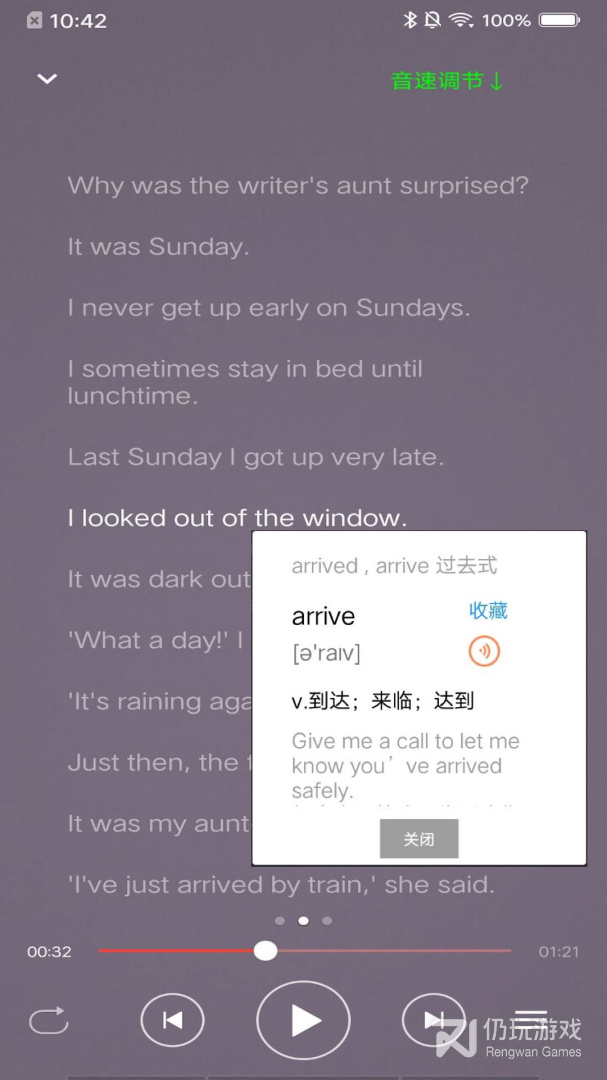 4、四、播放器,这是最节省体力的练习,除了可以对学过的单词或句子进行无限循环播放外,还可以对标记的单词或句子进行反复播放。泛听模式更是能够随时标记有兴趣的单词和句子