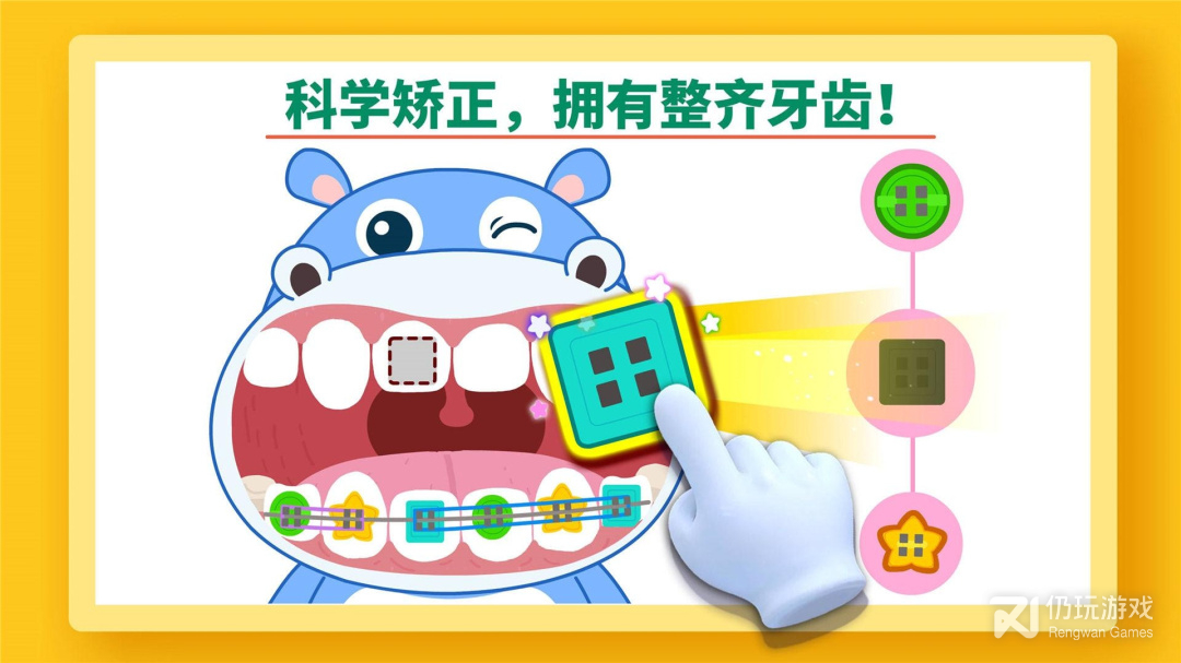 宝宝吃完糖果、蛋糕不刷牙,引起蛀牙?恐惧牙医,一去医院哭闹不停?让宝宝专属爱牙APP——【宝宝牙齿美容】来帮忙吧!通过让宝宝了解牙医工作,缓解宝宝看牙恐惧,督促宝宝养成爱牙好习惯。小动物们的牙齿好疼啊,正在医院等待治疗,小牙医快来帮帮它们~【宝宝小牙医的日常】消灭细菌,保持口腔清洁小猫不爱刷牙,牙齿上都是细菌,小牙医快来帮帮它,清理残渣,打开杀菌仪,消灭细菌,再喷上除臭剂。哇,小猫的牙齿变得又白又亮,记得要做好口腔清洁!修补蛀牙,缓解牙疼困扰小兔子睡前吃糖果,牙齿被虫子咬了大虫洞。小牙医先打磨掉蛀牙的部分,用水冲洗干净,再把牙洞用凝胶填充好,牙齿修补完成!吃完糖果、蛋糕要刷牙哦!矫正牙齿,增强自信心河马牙齿不整齐,不敢开口大笑,帮它戴牙套矫正。清洁牙齿,粘贴托槽,加钢丝、牵引皮筋固定,牙套戴好啦!矫正不仅能让牙齿美观,还能改善咀嚼,吃饭更香!宝宝巴士爱牙小课堂1、早晚刷牙,可以让牙齿更坚固2、少吃糖果,才不容易引起蛀牙3、常咬手指,会导致牙齿不整齐4、牢记护牙知识,养成爱牙习惯宝宝巴士和爸爸妈妈共同守护宝宝牙齿健康!小牙医还能体验为小动物拔牙换牙、刷牙!宝宝快来学习护牙知识,养成爱牙好习惯!宝宝巴士从健康、语言、社会、科学、艺术五大领域关注幼儿成长,根据幼儿不同年龄段左右脑发育、敏感期特点和学习重点来设计产品,打造“年龄+能力”的教育产品体系。让孩子学会独立思考,享受探索世界的乐趣。【宝宝巴士】是全球3.5亿家庭用户的早教选择!【宝宝巴士】儿童早教app,众多父母的选择,获得宝宝巴士、宝宝巴士儿歌、宝宝巴士奇妙屋、宝宝巴士科学岛、奇妙逻辑冒险、宝宝认昆虫、宝宝学垃圾分类、环保小宝宝等使用者的一致推荐。在【宝宝巴士】,我们自己也身为爸爸妈妈,所以非常重视儿童的健康和儿童的隐私。下载应用前,您可以从这里阅读我们的儿童隐私政策:http://cn.babybus.com/index/privacyPolicy.shtml
