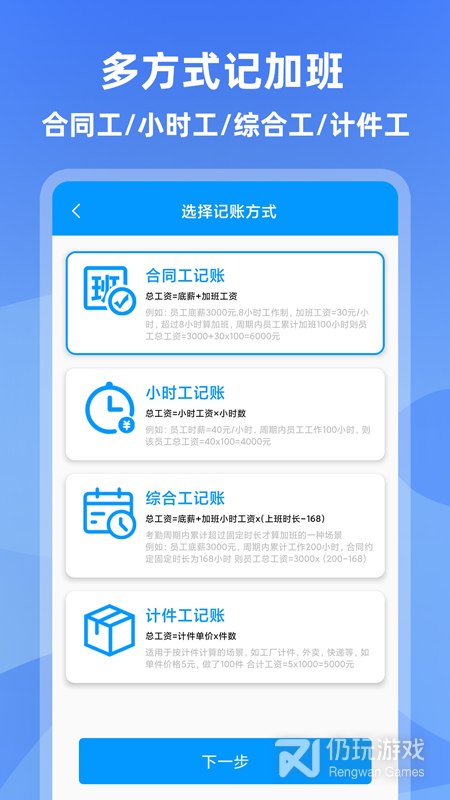 【标准工时/小时工】:记加班支持标准工时以及小时工等工资模式,保证精准记录与计算。