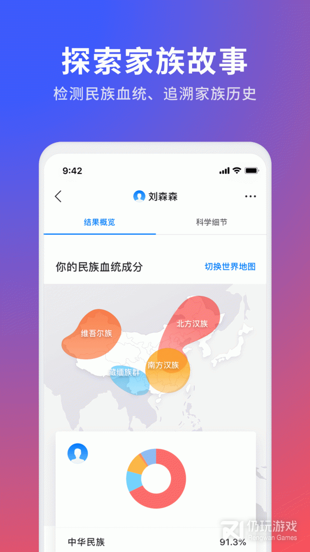 2、探索你的民族血统构成,了解祖先迁徙路径,解锁同宗中的历史名人,发现未知的亲缘关系