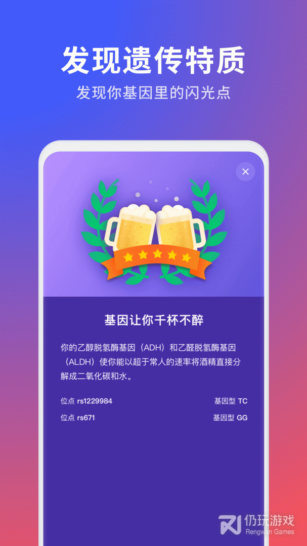 1、这款软件可以让您更好的了解自己的身体哦,独特的基因造就了我们每一个人,如果你也想要了解自己身体的秘密,检查自己的身体,那么千万不要错过这款软件哦