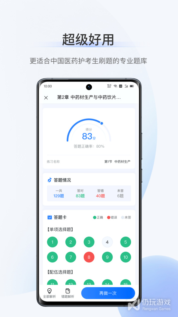 3、超级好用,更适合中国医药护考生刷题的专业题库,题库练习都是极其的容易