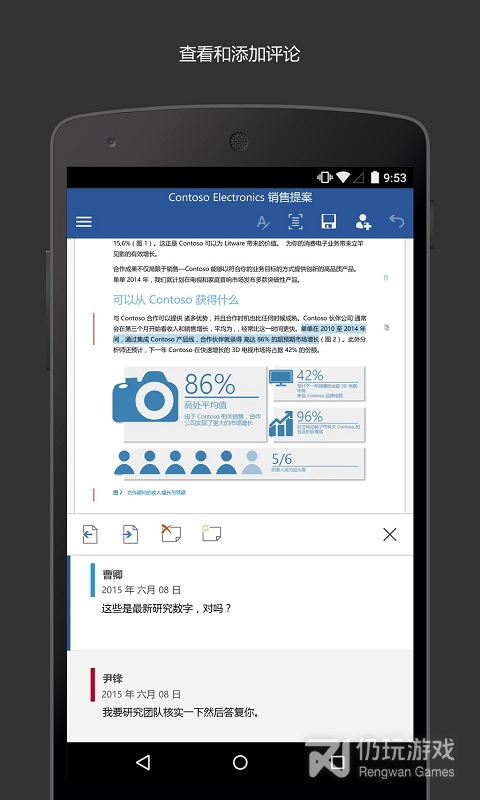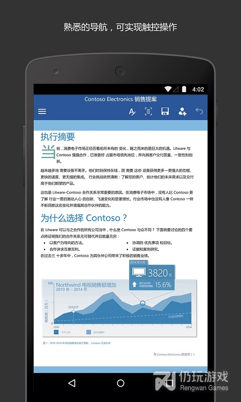 3、微软官方发布的Office组件 -Word现在您可以在安卓手机和平板上免费安装方便熟悉的的办公软件类应用—微软Office核心组件之一的Word。这是一款专为安卓平台设计的应用,带给用户完美的触控体验,并保证了熟悉的Office界面及品质