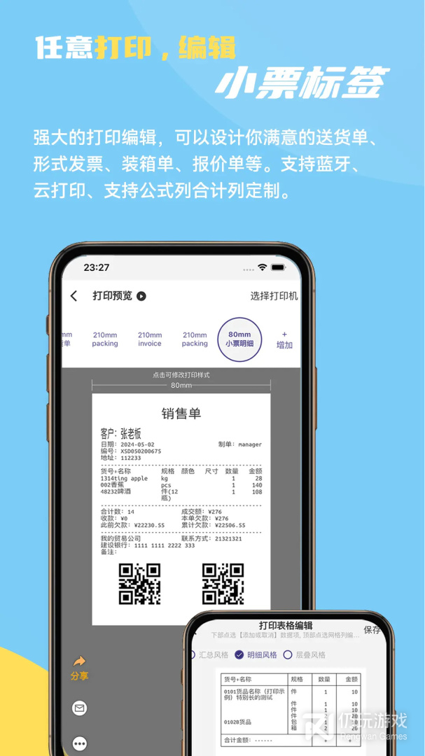 3、完善单据打印走纸及连续模式等处理,增加如订金及折前金额等更多打印项