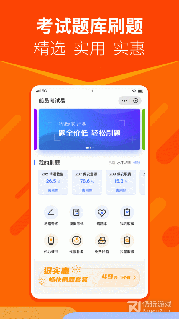 2、每一位航运工作者在入职前都会进行培训办证等,这款航运e家及UI可以很好地帮助用户朋友学习相关知识,并且它包含海量题库,能够让用户朋友学的懂做的对,相关单位通过它进行人员招聘,设备购买,是一个综合性强的app,喜欢就来下载吧