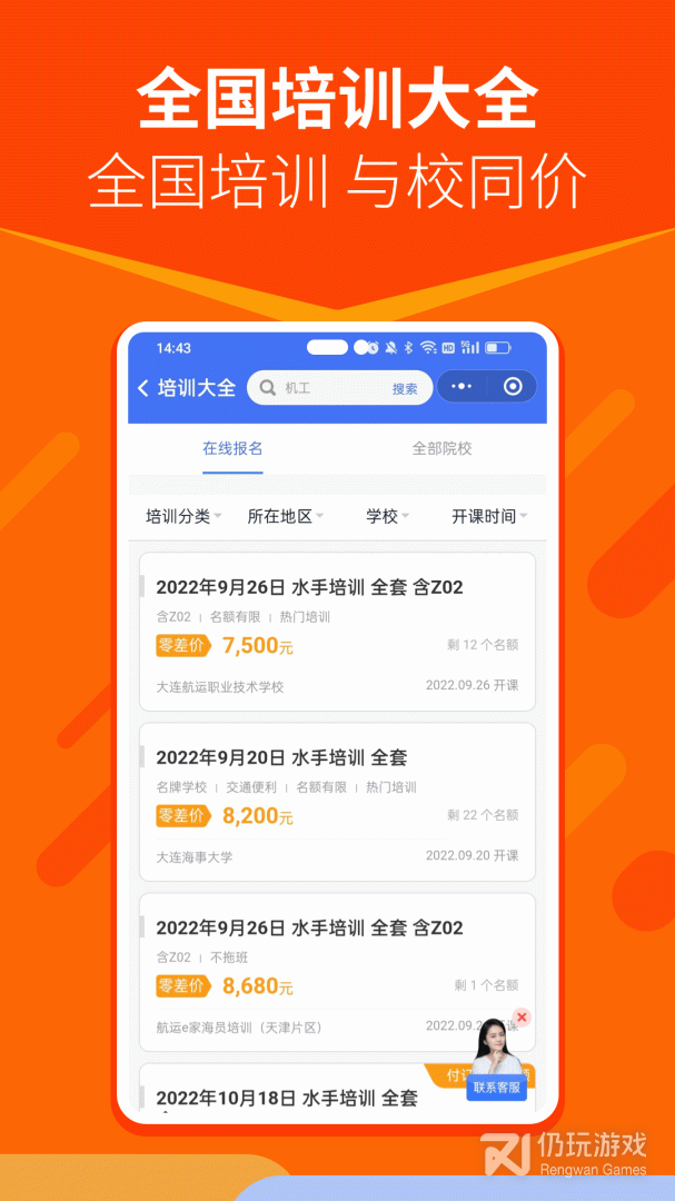 报名功能,用户可以在线进行报名,进入合作院校进行培训;