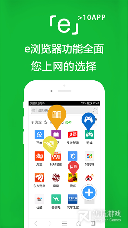 2、e浏览器为用户提供简单便捷的手机浏览器功能,方便用户体验极速上网带来便捷