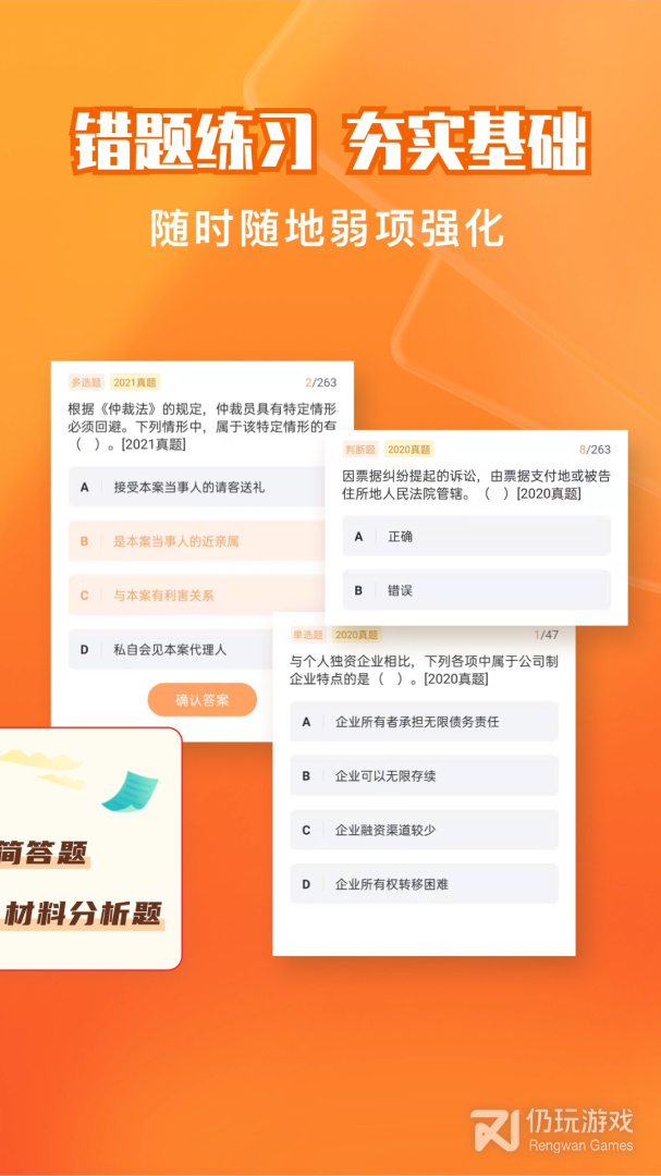 1、各类试题尽在囊中,做题帮助您查漏补缺。