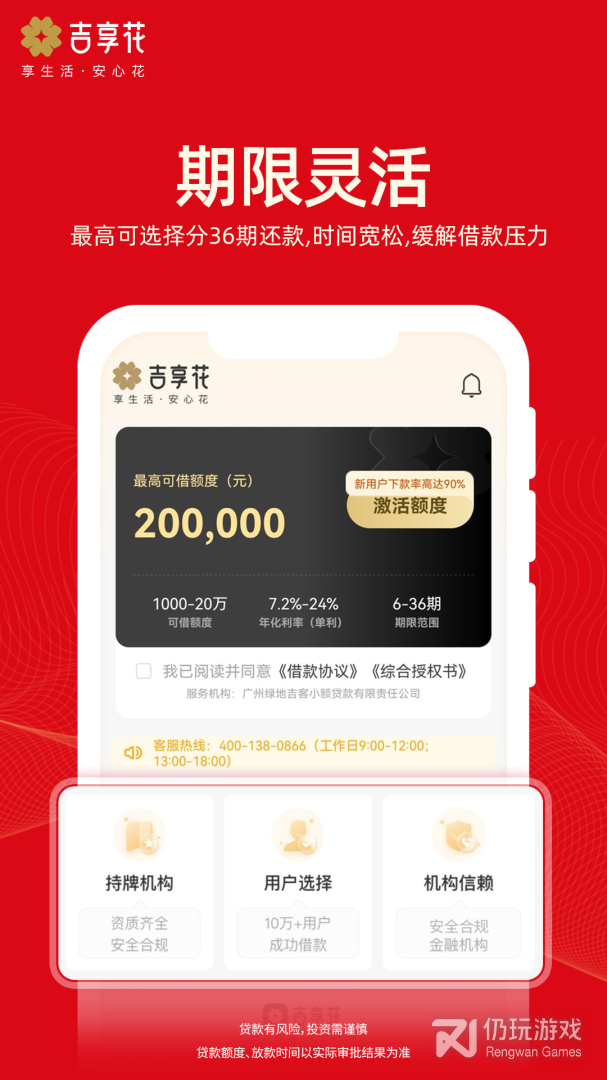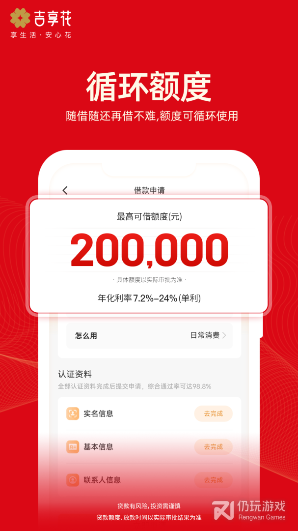 吉享花是绿地小贷旗下为用户提供便捷丰富的消费金融和生活服务平台