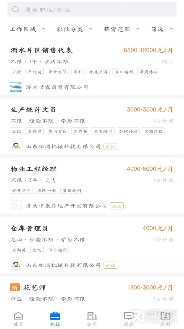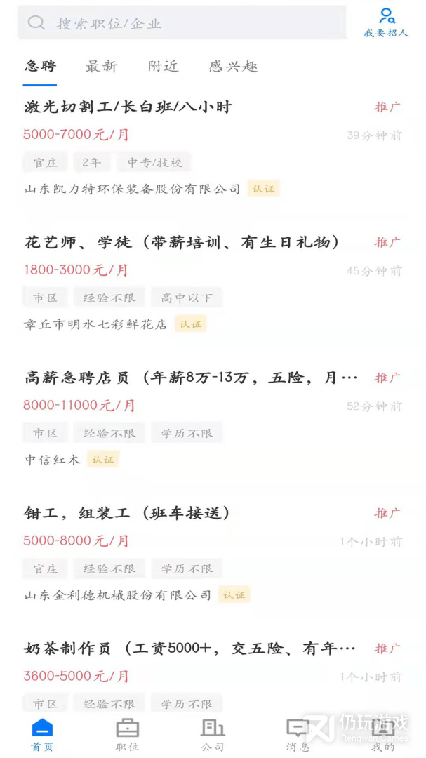 1、上面各类行业工作岗位应有尽有,最新的招聘状态也可以及时在上面了解到,是一款非常好的找工作软件