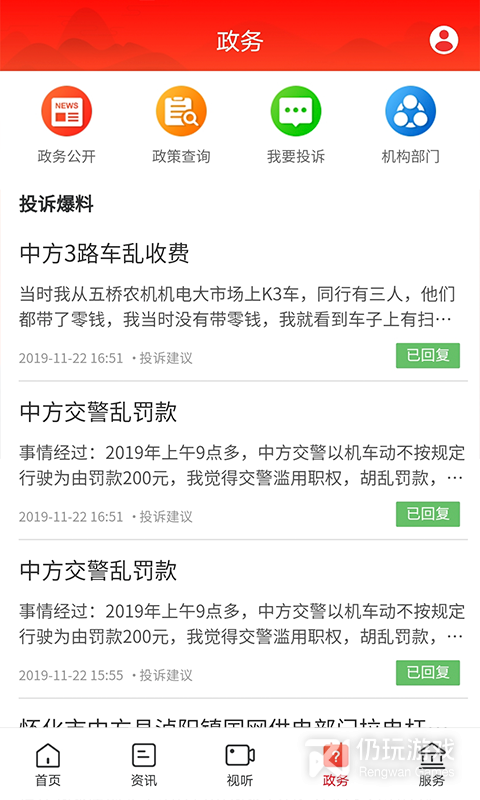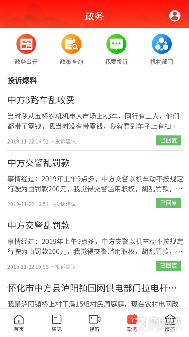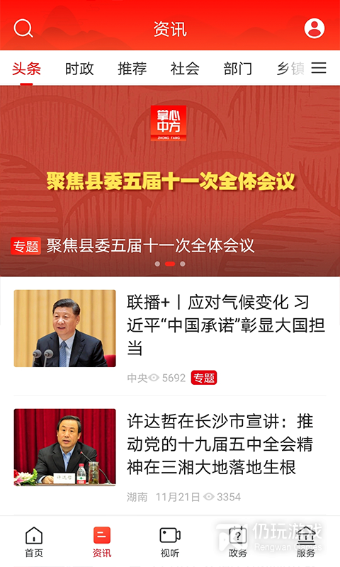 3、掌心中方是专为中方县制作的融媒体移动平台,平台拥有资讯,视听,政务,服务等等板块内容