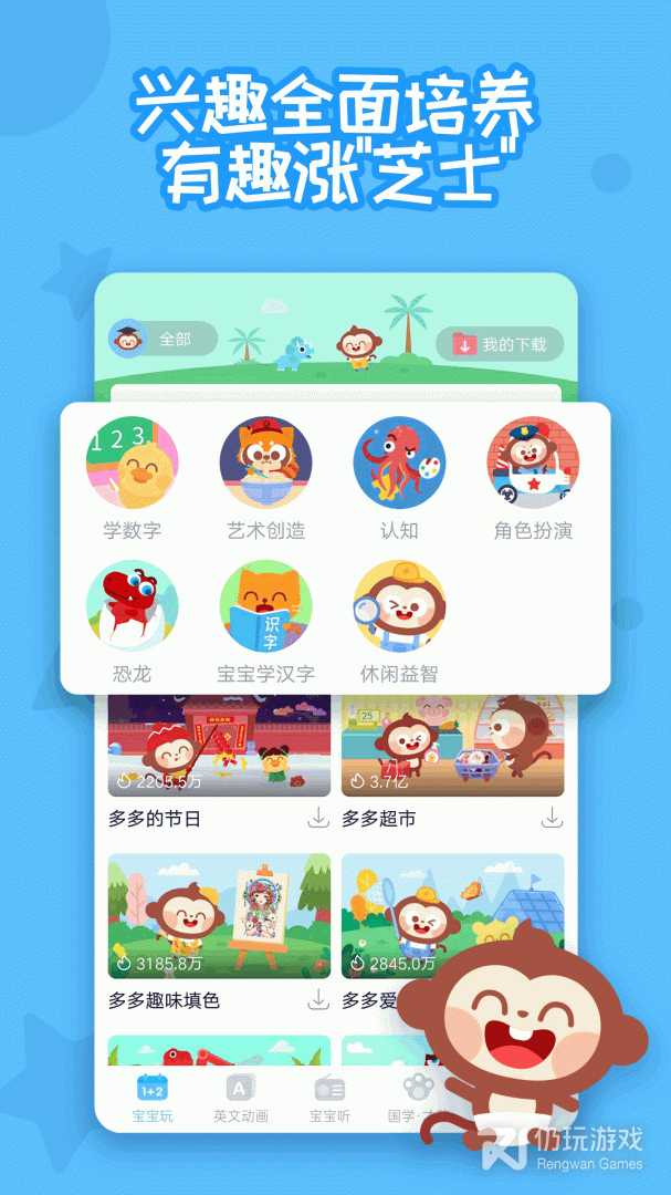 一款涵盖儿童早教儿歌和动画故事学本领的APP,妈妈们的放心选择,让育儿变得更轻松!早教优选,亲子育儿辣妈选择的哄娃小助手多多早教,让早教启蒙变得更快乐!