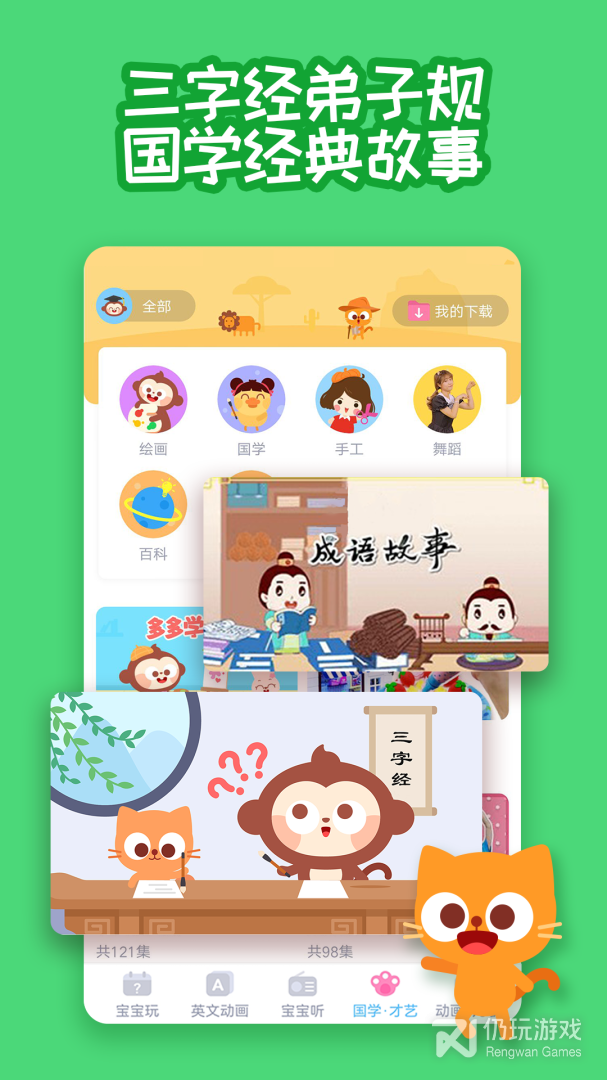 1、里面不仅仅包含了各种儿童启蒙绘本,还有儿歌,绘画等等项目,帮助孩子进行全面的启蒙教育