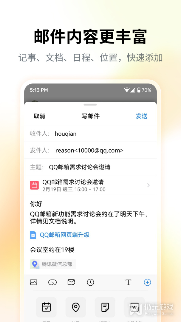 1、邮件格式多样化,支持插入地理位置