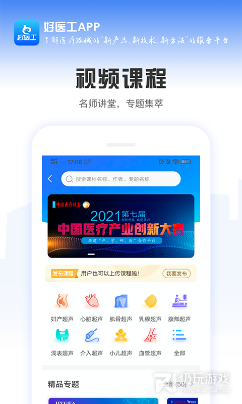 临床课程、行业前沿、培训课程、超声课程、管理课程等,为用户提供专业内容。