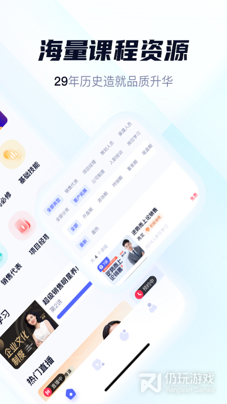 2、世联云学院是一个非常优秀的线上培训中心,很多公司们需要大量的优质人才就可以来这个平台上面为自己的员工提供专业的技能培训。APP提供的培训从入门的职业技能培训到如何成为主管,这些培训内容都是由那些在职场上打拼了非常久的专业职场人士编制的,教学效果非常显著,学到了也非常的实用
