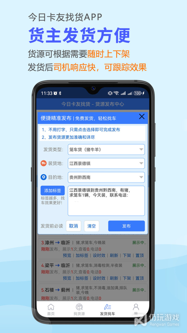您可以根据自己的运输路线寻找同一路线的货源,提高运输效率,为货车司机带来更高的收入,货车司机在这里可以清楚地看到货主发布的信息,查看货主对货源的要求,货车司机选择货源后可以点击货主的联系方式,快速与货主直接沟通,可以使双方的合作更加方便,尽早联系。获取货源