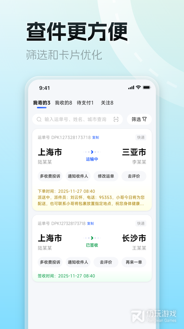 德邦快递是德邦专为手机客户设计的一站式手机服务终端,具有下单、查单、跟踪及个人资料管理等基本功能,支持手机与电脑双屏互动等个性功能。上线全新界面整改,可直接在线下单,可随时查询快速位置和信息,还有相关客服服务,有问题都可以使用软件进行解答。